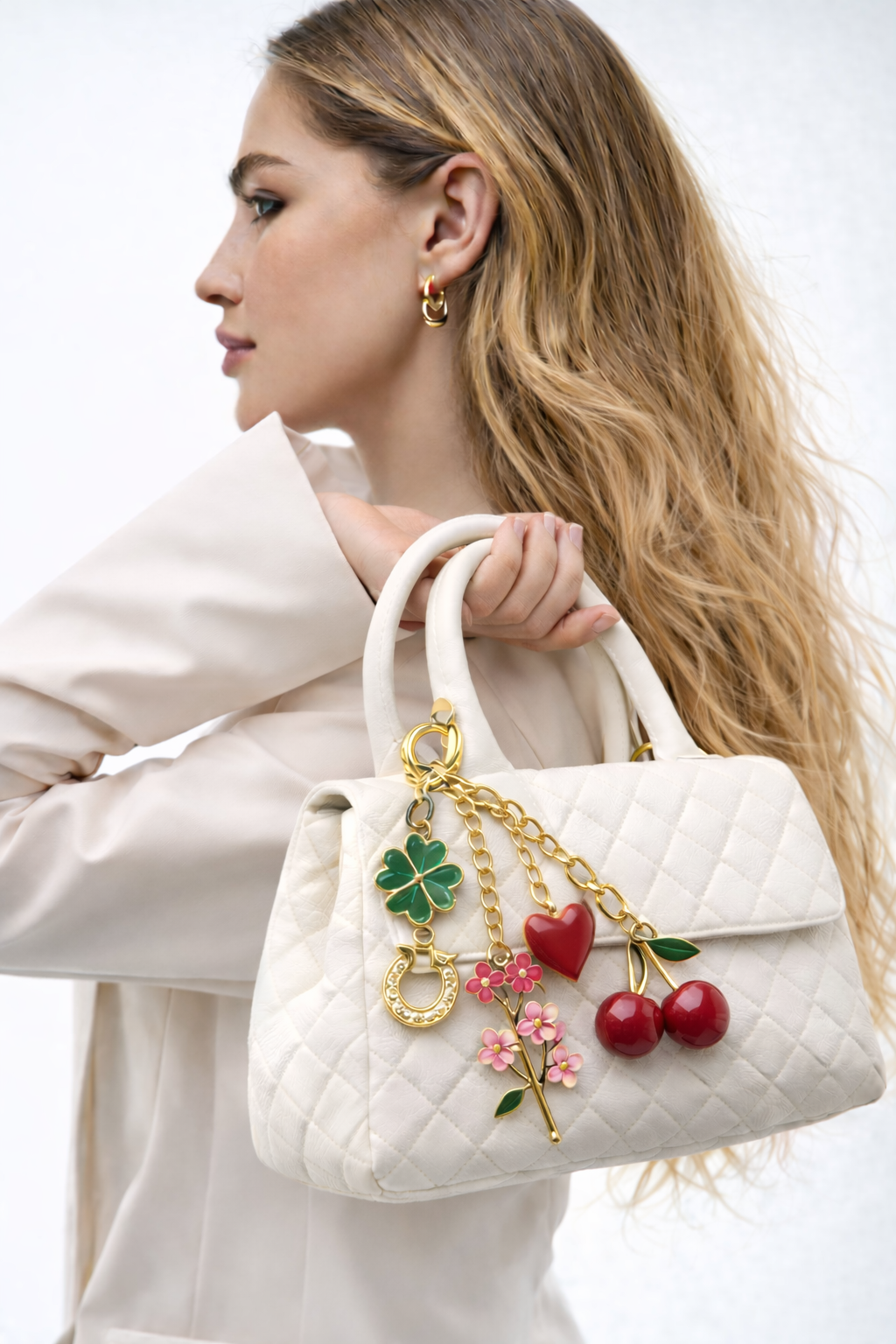 Cherry Blossom Heart-Shaped Bag Charm Durable Lobster Clasp DIY Bag Accessory Perfect Gift for Women Romantic Token of Love